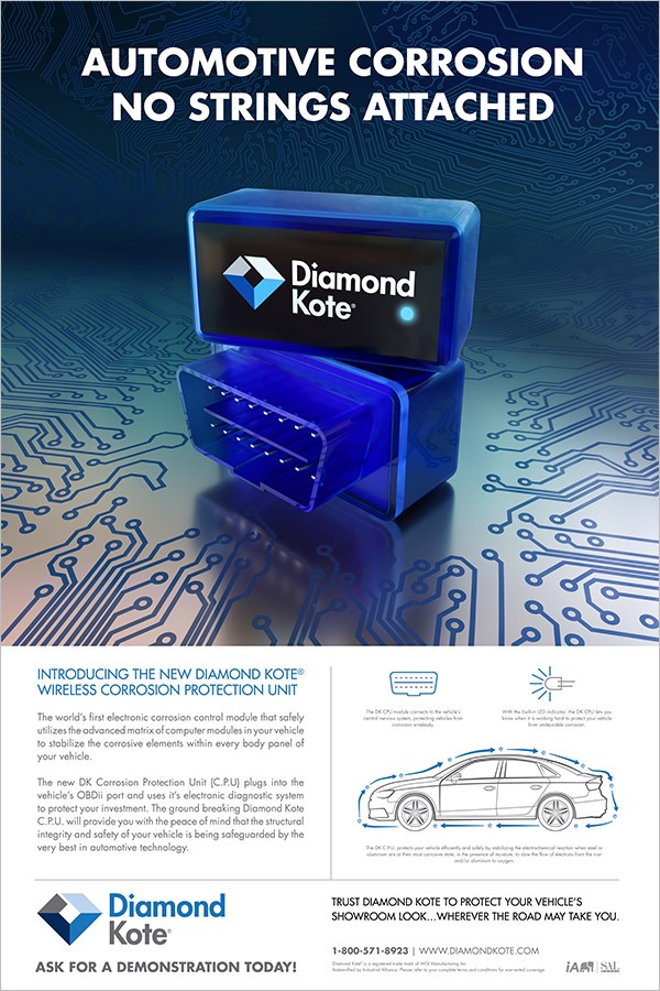 Diamond Kote was looking for an illustrative poster that they can use to launch their new automotive wireless corrosion module. At the same time, they want to showcase the module and if possible a hint of how it works. Two version were presented, below you will find the produced images that were part of the final drafts.