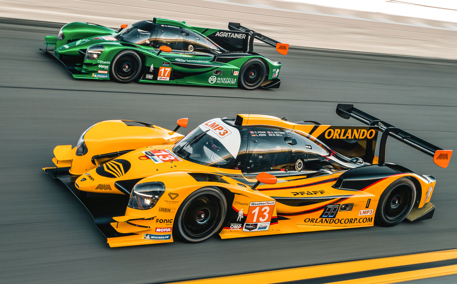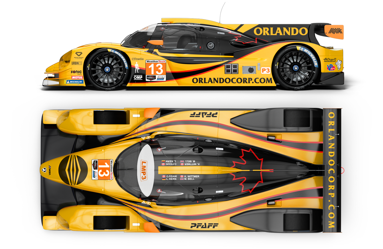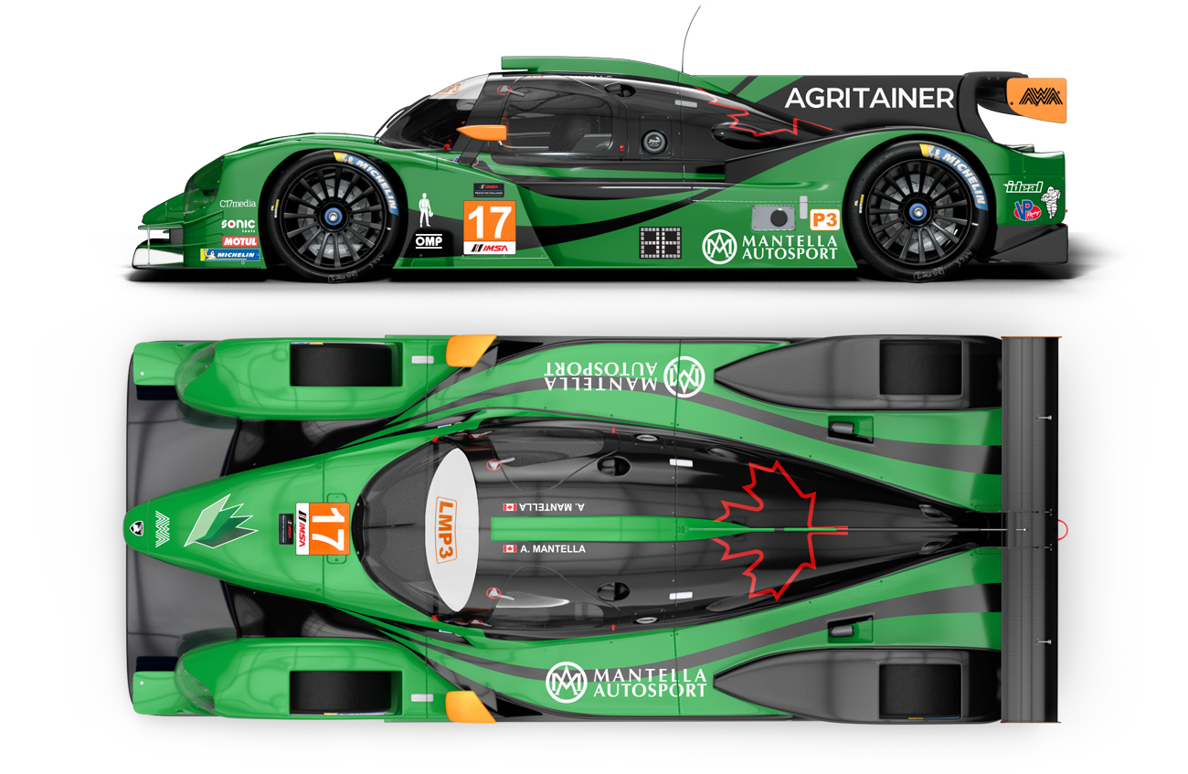 In 2021 the AWA team in partnership with ORLando Corp. moved from driving a Mclaren to a new Duqueine D-08 prototype car. I have the pleasure to create a livery for the two new cars that the team was running in different divisions of the IMSA prototype car division for the 2022 season. One of the cars was under the ORLANDO corp banner and the other one was under the AGRITAINER/Mantella Corp.