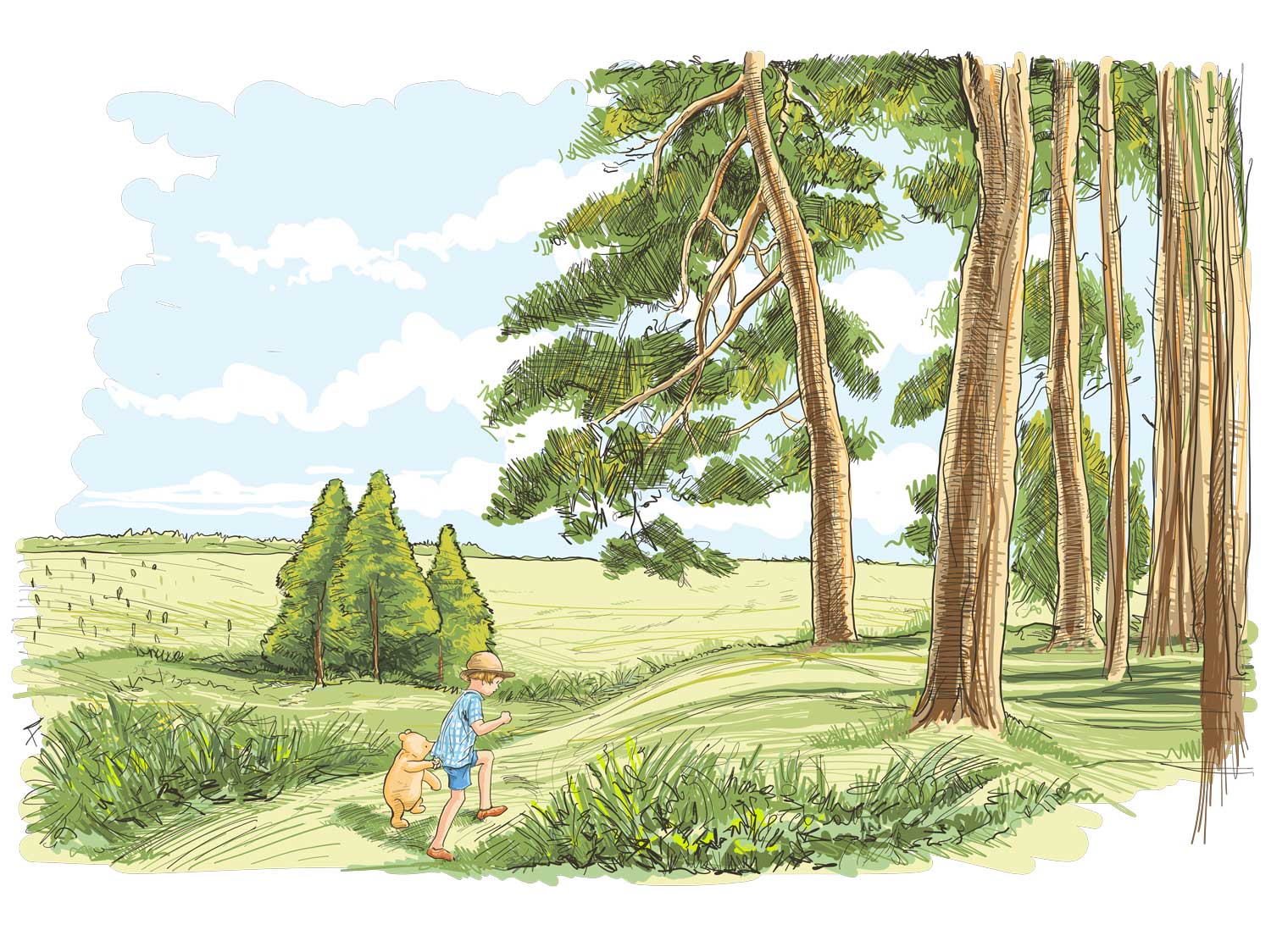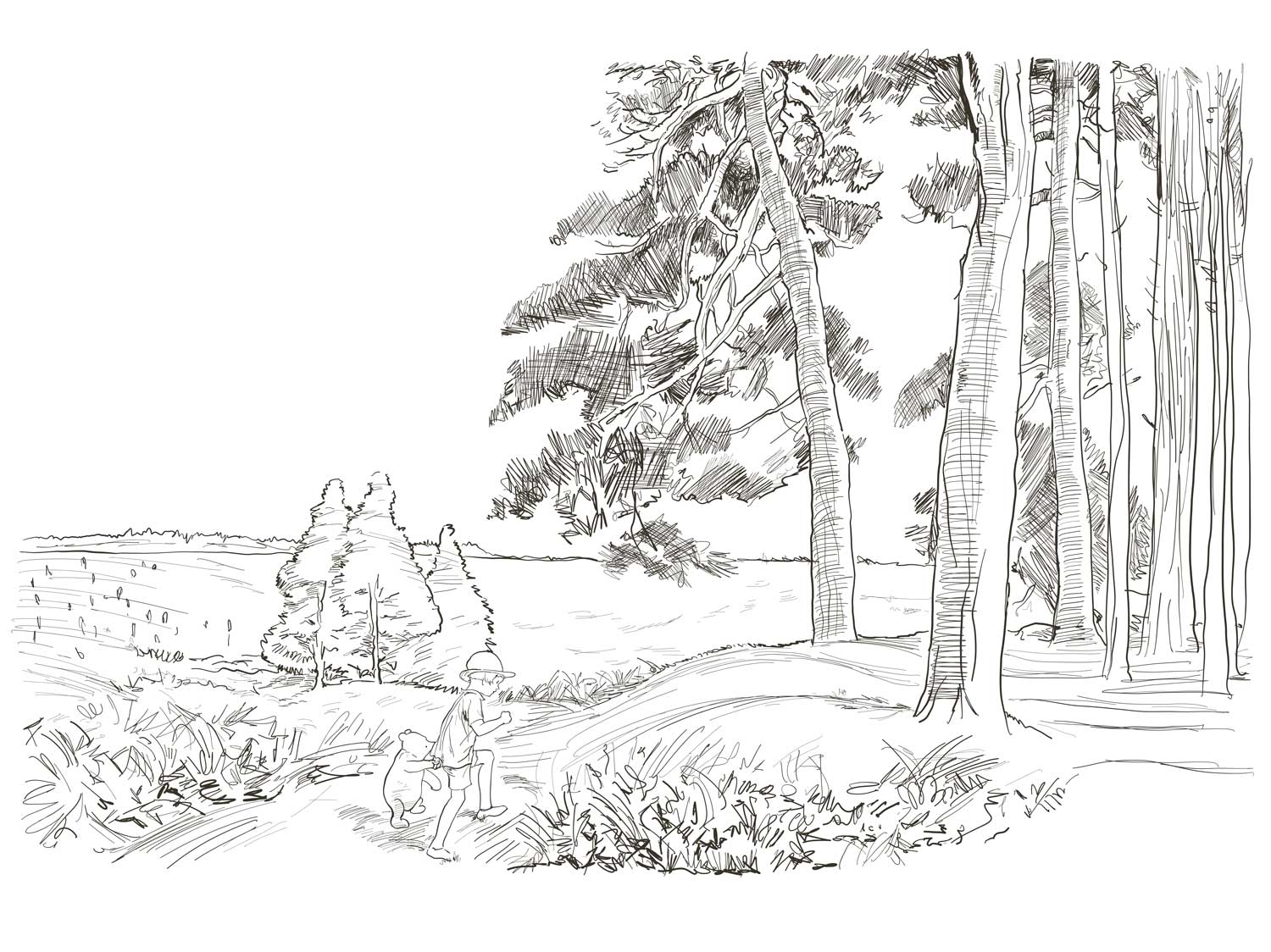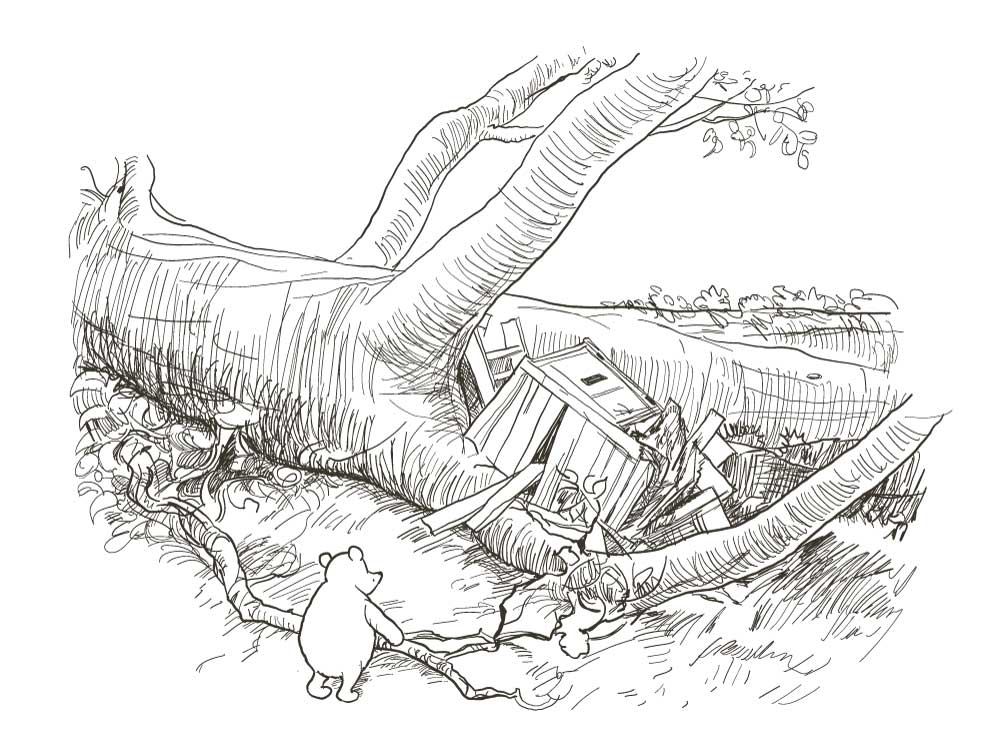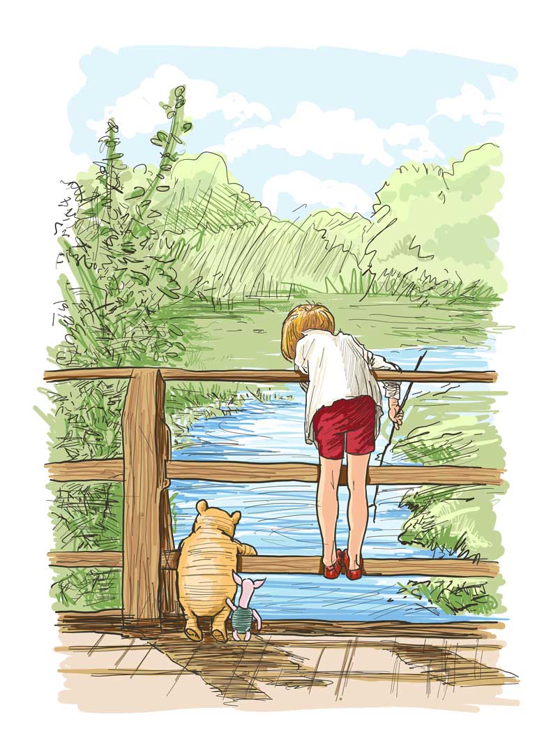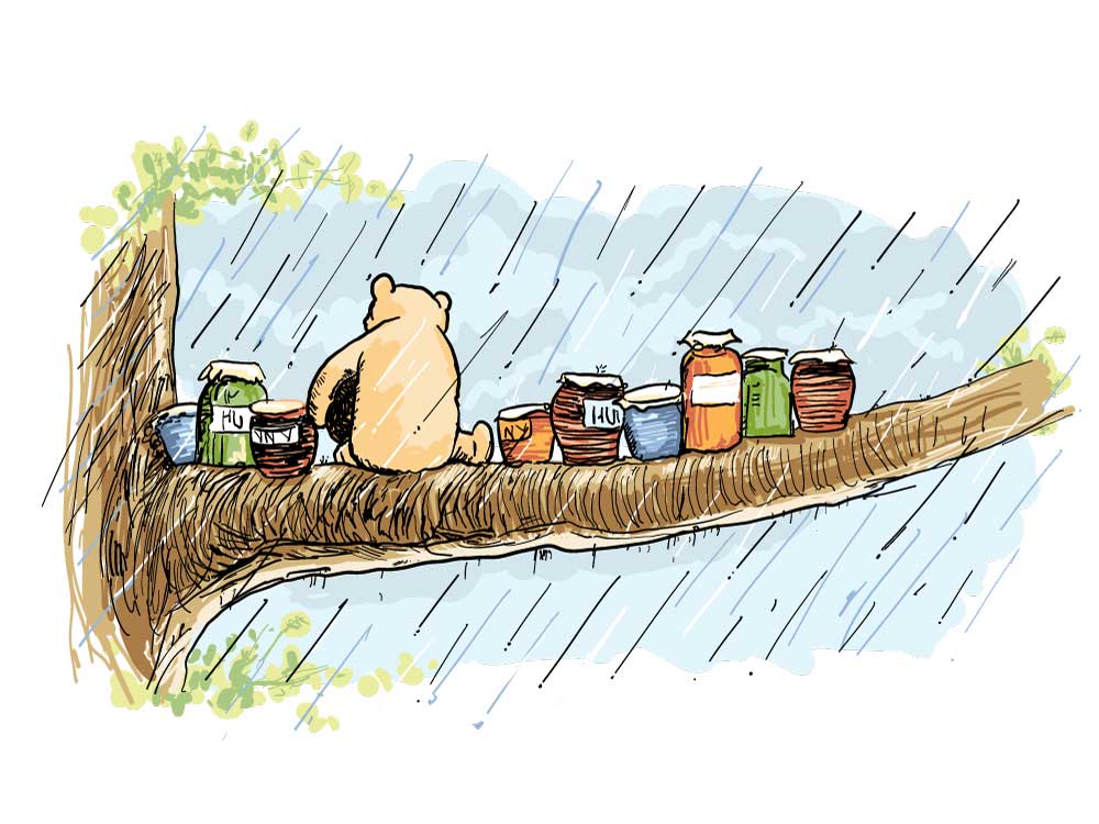 A friend asked me to recreate some vintage Winnie the Pooh illustrations for a personal project. I was familiar with the Disney version of Winnie the Pooh, but I was amazed by the line work of the original illustrator, Ernest Howard Shepard. I was hooked. I tried to recreate his masterful inking and added some coloring that complements his inking style while being all the time in vector form.